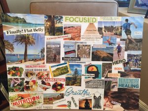 Below is a vision board with a focus on health that I made a while back. If I made one today it would probably look a little different, actually quite a bit different if I knew a bunch of people were going to look at it.